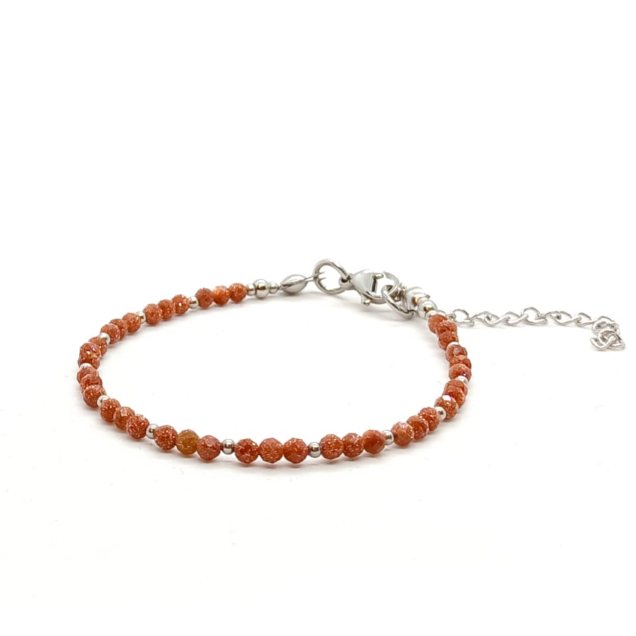 Bransoletka Piasek Pustyni – bransoletka z kamieni o charakterystycznie mieniącej się brązowej barwie. Bransoletka wykonana ręcznie na lince stalowej jubilerskiej z zapięciem typu karabińczyk, z dodatkową regulacją obwodu bransoletki (łańcuszek o długości 4cm). Minimalny obwód wewnętrzny bransoletki: 16,5cm. Kamienie Piasek Pustyni o średnicy 3mm. Dodatki ze stali chirurgicznej. Elegancka bransoletka z kamieni naturalnych stanowi gustowną i oryginalna ozdobę nadgarstka. Bransoletka wykonana ręcznie w Polsce – Bransoletki Made in Poland.
