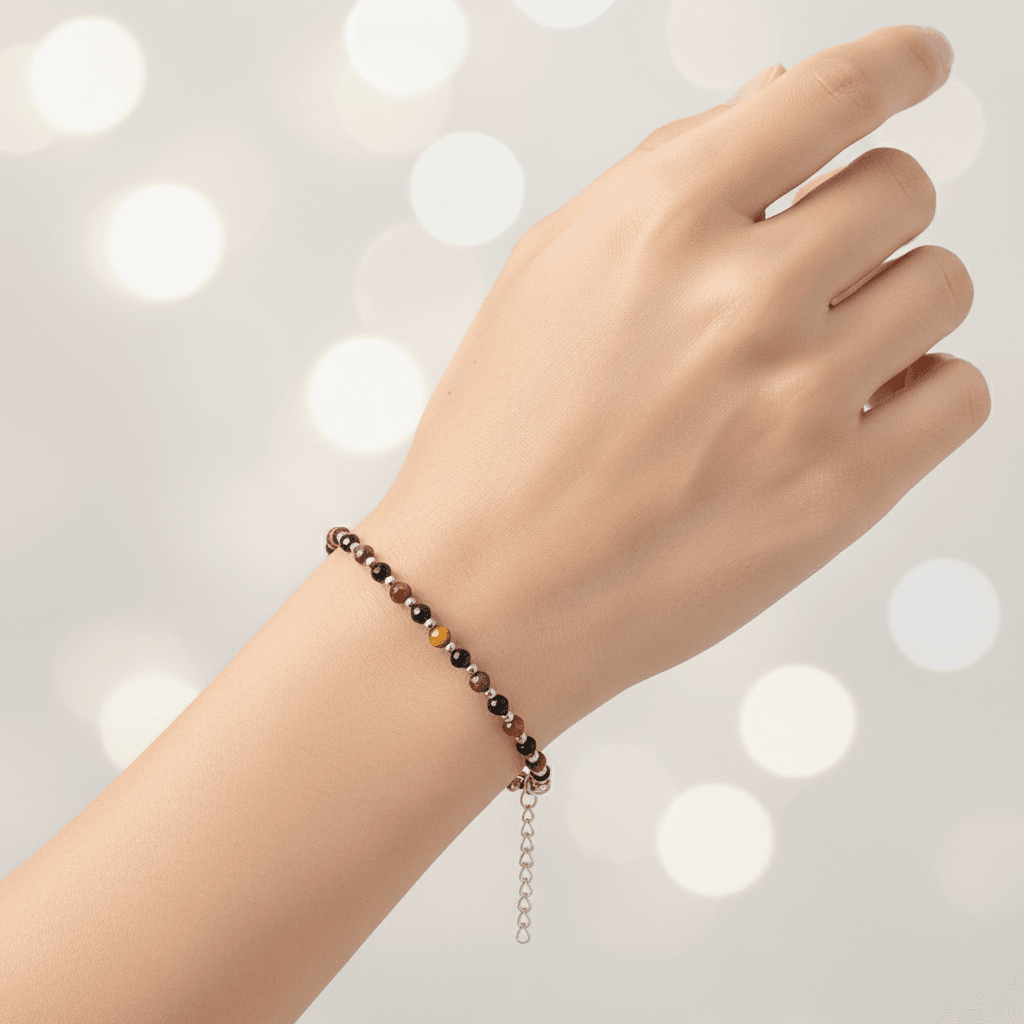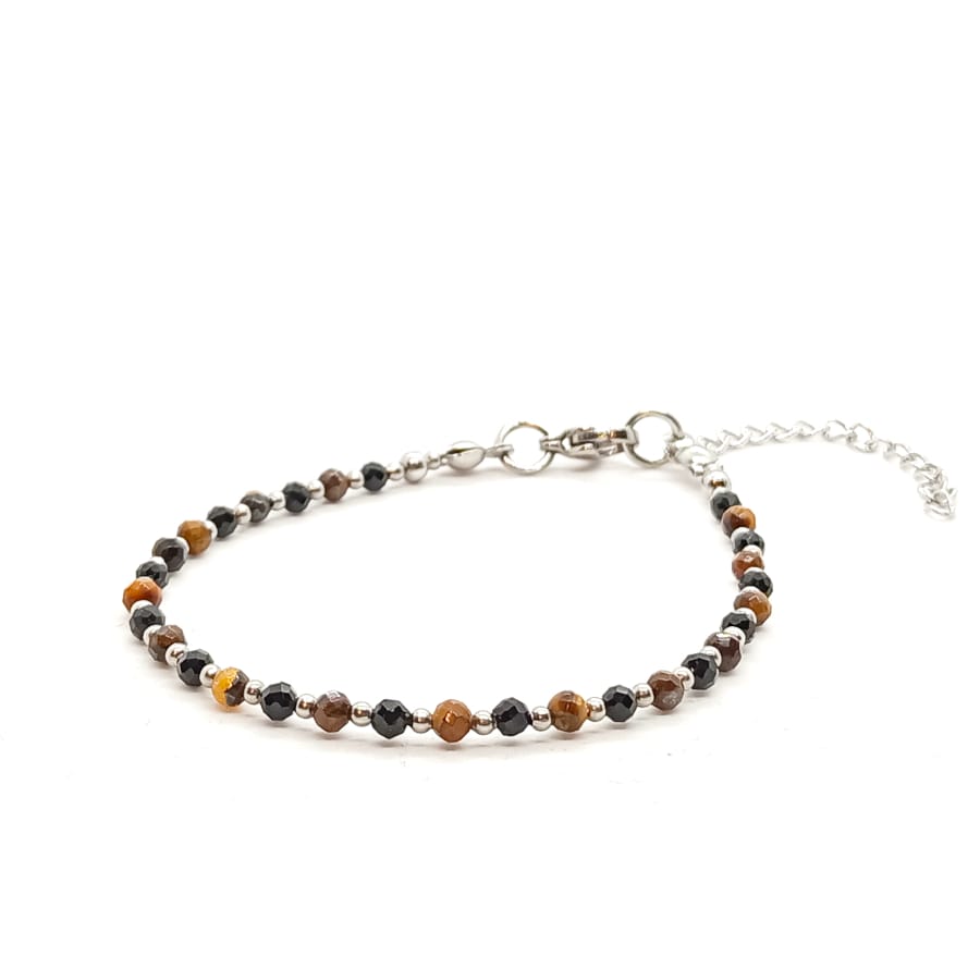 Bransoletka Tygrysie oko, Turmalin czarny – kamienie naturalne półszlachetne. Minimalistyczna bransoletka z kamieni naturalnych wykonana ręcznie na lince stalowej jubilerskiej z zapięciem typu karabińczyk. Rozmiar: obwód wewnętrzny wg wybranego rozmiaru + dodatkowo łańcuszek regulacyjny o długości 4cm. Kamienie Tygrysie oko fasetowane o średnicy 3mm, Turmalin czarny fasetowany o średnicy 3mm. Dodatki ze stali chirurgicznej. Elegancka bransoletka z kamieni naturalnych stanowi gustowną i oryginalna ozdobę nadgarstka. Bransoletka wykonana ręcznie w Polsce – Bransoletki Made in Poland.