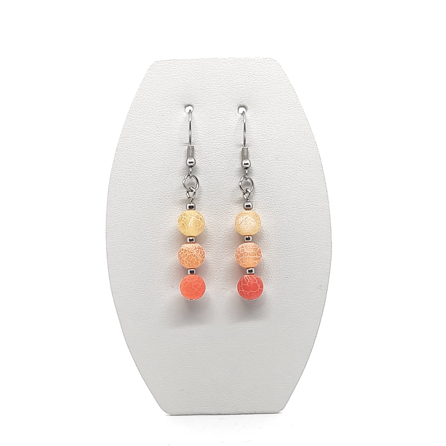 Kolczyki Agat kwasowany – kamienie naturalne. Kolczyki z kamieni naturalnych wykonane ręcznie. Długość kolczyka wynosi 57mm. Kolczyki wyposażone są w zapięcie typu bigle otwarte ze stali chirurgicznej. Agat kwasowany o średnicy 8mm. Elementy dodatkowe ze stali chirurgicznej – kulki o średnicy 3mm. Kolczyki z kamieni naturalnych wykonane ręcznie w Polsce – Kolczyki Made in Poland.
