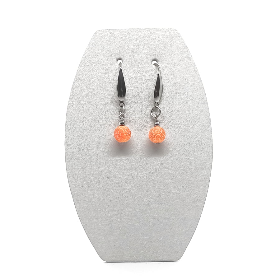 Kolczyki Agat kwasowany – kamienie naturalne. Kolczyki z kamieni naturalnych wykonane ręcznie. Długość kolczyka wynosi 36mm. Kolczyki wyposażone są w zapięcie typu bigle otwarte ze stali chirurgicznej. Agat kwasowany o średnicy 8mm. Elementy dodatkowe ze stali chirurgicznej – kulki o średnicy 3mm. Kolczyki z kamieni naturalnych wykonane ręcznie w Polsce – Kolczyki Made in Poland.